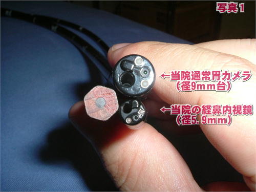 カメラ径は当院採用通常細経カメラより更に細い5.9mmです。 また、鼻に適したしなやかさでむりなく、スムーズな挿入ができます。(写真 1)